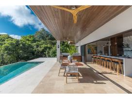 This four-bedroom architectural retreat blends warm materials with modern sensibility. Each suite offers a king-sized bed, private bath with indoor-outdoor showers, and soaring views. Natural light pours in from every direction, yet the villa remains shaded, serene, and perfectly cool-with A/C in all rooms including the living space and office.