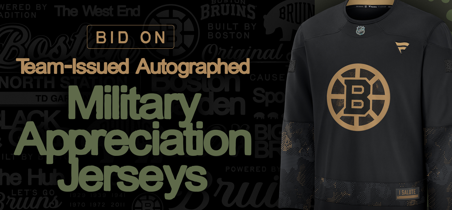 You can still participate in the auction!Bid on Team Issued and Autographed Military Appreciation Jerseys autographed by your Boston Bruins!