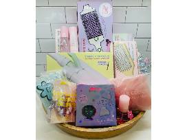 Limited Edition "Don't Blow It" Jumbo hot round brush, Tripple Ripple jumbo hair waver, 1" & 1.25" curling wand attachments, Ready or Knot hair brush, Full-size hair & body mist with 2 clips, Shiny Dancer hair oil, Cotton Candy hair texturizer, Pinky Promise hair & body mist, Sugar Cloud scrunchie, 2 Jumbo section clips, 2 Cloudy Claw Clips, 2 Partly Cloudy setting clips, and stickers!
