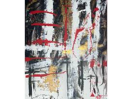 Narrative of painting: strong, bold color, texture and composition represent passion, strength, resilience and victory.