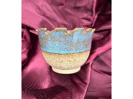 Handcrafted two (2) teacups and one (1) stoneware bowl