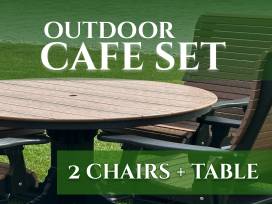 100% USA Made In Missouri, this Cafe Set is Environmentally Friendly, Weather Resistant Poly that doesn't Bend to the Environment, Pet Friendly, Termite and Mold Resistant, Hidden Fasteners, Marine Grade Stainless Steel Fasteners, and 20 Year Warranty.