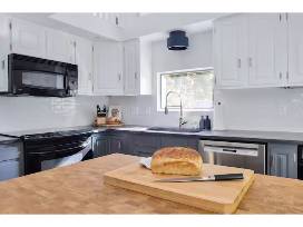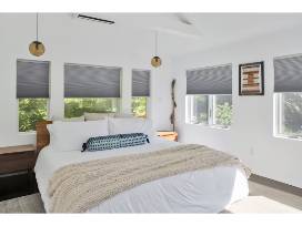 The home comfortably accommodates up to six guests with three well-appointed bedrooms, three beds, and two-and-a-half baths, providing both privacy and welcoming spaces to gather. Sunlight fills the living areas through generous windows, creating a warm and relaxed atmosphere for slow mornings, cozy evenings, and meaningful time together.