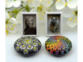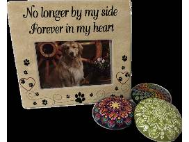 Keep your pet close to your heart with a custom memorial stone incorporating their ashes. Each stone is hand-painted with a mandala design of your choice and lovingly infused with Reiki energy and healing intentions. Makes a meaningful keepsake to support your healing journey! Handmade from cement and ashes, measures approximately 3" in diameter, features a custom mandala design infused with Reiki energy. You'll also be able to remember your besets friend with this 4" x 6" "No Longer By my Side, Forever in My Heart" paw print picture frame.