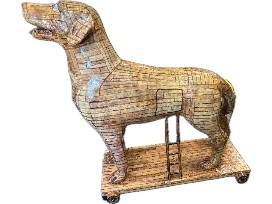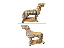 Let's have a bidding war over the Trojan Dog War Dog! This Trojan War Dog Statue stands approx. 37" x 31" and was one of the dogs that was distributed to local businesses as a fundraiser to help build the Ozaukee Campus in 2010-2011. Each dog had a different theme.