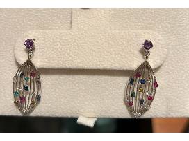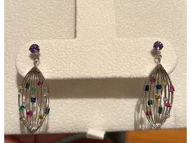 Lance Letscher inspired 14K white gold necklace and earring set with diamonds and various precious stones