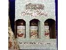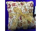 Three bottles of wine, as well as Gray & Cream geometric patterned pillows