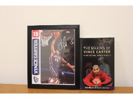 Includes 8x10 photo signed by Vince Carter and Copy of The Making of Vince Carter: A Basketball Mom's Memoir signed by Dr. Michelle Carter. Carter played 22 seasons in the NBA. Carter was drafted 5th overall by the Toronto Raptors in 1998. After 6 seasons there, he went on to play for the New Jersey Nets, the Orlando Magic, the Phoenix Suns, the Dallas Maverics, the Memphis Grizzlies, the Sacremento Kings, and he finished his career with the Atlanta Hawks. Carter averaged 16.7 points per game over the course of his career, and his number 15 was retired by both the Toronto Raptors and the New Jersey Nets.