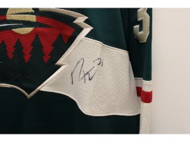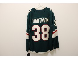 Jersey signed by Minnesota Wild forward, Ryan Hartman. Originally selected 30th overall in the 2013 NHL Draft by the Chicago Blackhawks, Hartman has played over 600 NHL games, tallying more than 120 goals and 150 assists. He posted a career-best 34 goals and 65 points during the 2021-22 season and continues to be a vital part of the Wild's top-six forward group. Hartman has become a fan favorite for his physical presence and versatility on the ice.