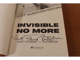 Signed Copy of Invisible No More: A Historical Novel by Scott Pitoniak and Rick Burton highlighting the story of Wilmeth Sidat-Singh, a U.S. Army Air Corps officer with the Tuskegee Airmen, and SU basketball and football alum who was subject to segregation in college and professional sports in the 1930s. Sidat's #19 was retired by Syracuse University in 2005.