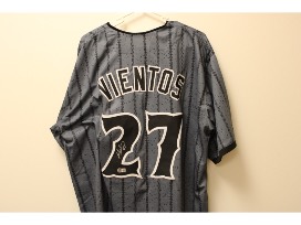 City connect style jersey signed by New York Mets third baseman Mark Vientos. Vientos was called up briefly in 2022 and 2023, but truly shined in 2024. In only 111 games, Vientos smashed 27 homeruns and had 71 RBIs. Over 13 playoff games in 2024, Vientos had an average of .327 and hit 5 homeruns, playing a key role in the teams NLCS berth.