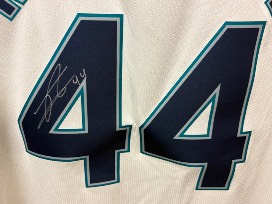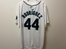 Jersey signed by Seattle Mariners outfielder, Julio Rodriguez. He made his MLB debut in 2022 after signing as an international free agent in 2017. Through the 2025 season he has a batting average of .274, has hit 112 home runs, driven in 341 runs, and stolen 116 bases. He was named the American League Rookie of the Year in 2022, is a three-time All-Star (2022, 2023, 2025), and has earned two Silver Slugger Awards (2022, 2023).