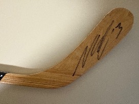 Collectible series hockey stick signed by New Jersey Devils center, Nico Hischier. Hischier was drafted first overall in the 2017 Draft, becoming the first ever player from Switzerland to be drafted first overall. In 2020 Hischier was named to the NHL All-Star Team in 2020 and is a Devils Captain.