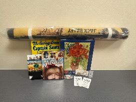 Package includes free admission for 4 to the All Things Oz Museum located at 219 Genesee St, Chittenango, NY 13037, a 17x36 in Wizard of Oz Tapestry, Daises and Poppies 500 pc jigsaw puzzle, copy of the Curious Cruise of Captain Santa by Ruth Plumly Thompson, After the Wizard DVD, technicolor can koozie, Celebrating Dorothy 2011 button, and Oz keychain.