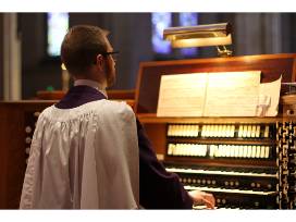 Christopher Keady is the Associate Director of Music at Grace Cathedral, serving as principal accompanist for the Cathedral Choir of Men and Boys. He was raised in Eugene, Oregon and earned a bachelor's degree from Lewis & Clark College in Portland, Oregon, where he studied organ with Dr. Lee Garrett. He subsequently served as Assistant Organist at Trinity Episcopal Cathedral in Portland. Keady received his Master's Degree in Organ Performance at the Institute of Sacred Music at Yale University, having studied with Martin Jean and served as Sacred Music Intern at the Brick Presbyterian Church in New York City. He and his husband Dan live in Richmond.
