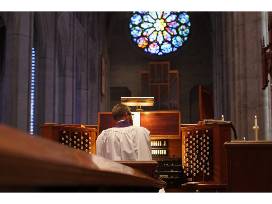 Christopher Keady, Associate Director of Music at Grace Cathedral, performs on the cathedral's 7,466-pipe Aeolian-Skinner instrument, the Charles B. Alexander Memorial Organ (1934).