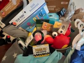 Spoil your large pup with this ultimate bundle from PetSmart, perfect for play, adventure, and festive fun! This package includes: Arcadia Trail Water Bladder Harness and Ultra-Reflective Sherpa Jacket for safe, comfortable outings. 3 Novelty T-Shirts, 2 Sweaters, 2 Novelty Outfits, and a Santa Outfit for playful style. Reindeer Headband and Dog Bandanas for holiday cheer. Hive Disc Lick Mat and Earth Rated Fly Toy for enrichment and interactive play. Bag of Tennis Balls and Assorted Treats for fun and rewards. Arcadia Trail Durable Coated Outdoor Socks for paw protection on adventures.