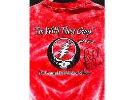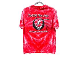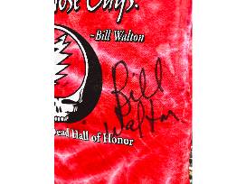 Vintage red tie-dye Grateful Dead Hall of Honor tee signed by legendary basketball player Bill Walton. The back features the Steal Your Face logo with Walton's quote "I'm With Those Guys," along with his signature. The front shows a fun basketball graphic inspired by Walton. Please note all shipping costs are the sole responsibility of the purchaser.