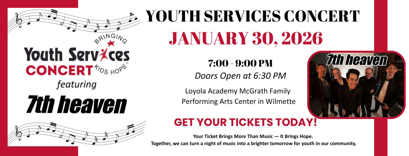 The funds raised through our Concert make an incredible difference in the lives of children and youth who turn to Youth Services for support. Your generosity makes it possible for all children in our community to grow up happy, healthy and hopeful - and ensures that no one is ever turned away based upon their ability to pay.