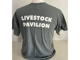 Gray shirt for the crew working the Livestock Pavilion during the Fair. "Still the One" logo on the front and block text of Livestock Pavilion across the back. Size L.