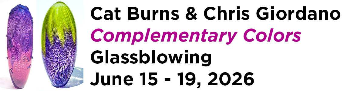 Join artists Cat Burns and Chris Giordano for an immersive 5-day glassblowing adventure dedicated to the vibrant world of color. Dive deep into dynamic techniques like cane work, supios, stuff cups, roll-ups, twisty cane, overlays, color fades, encalmos, and murrine.