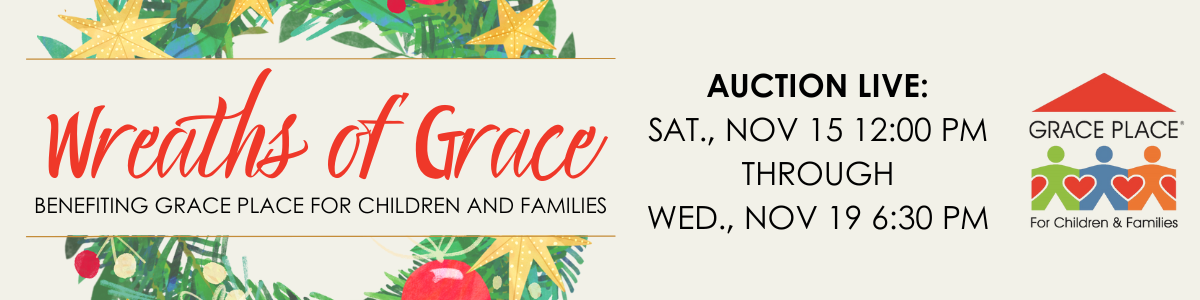 You can still participate in the auction!Get into the holiday spirit and support Grace Place by bidding on beautifully crafted wreaths in our third annual Wreaths of Grace auction! Decorated by Naples' top interior designers, all proceeds help our children and families. Check the items page to see each wreath and learn about its designer.