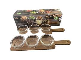 - Set of 2 Acacia serving boards with 6 glass bowls