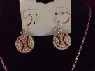 You are sure to be noticed wearing this necklace and earring set made for the true baseball fan. Crystal baseball pendant necklace with matching crystal baseball earrings.