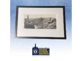Four professionally framed black and white photos of historic Pittsburgh