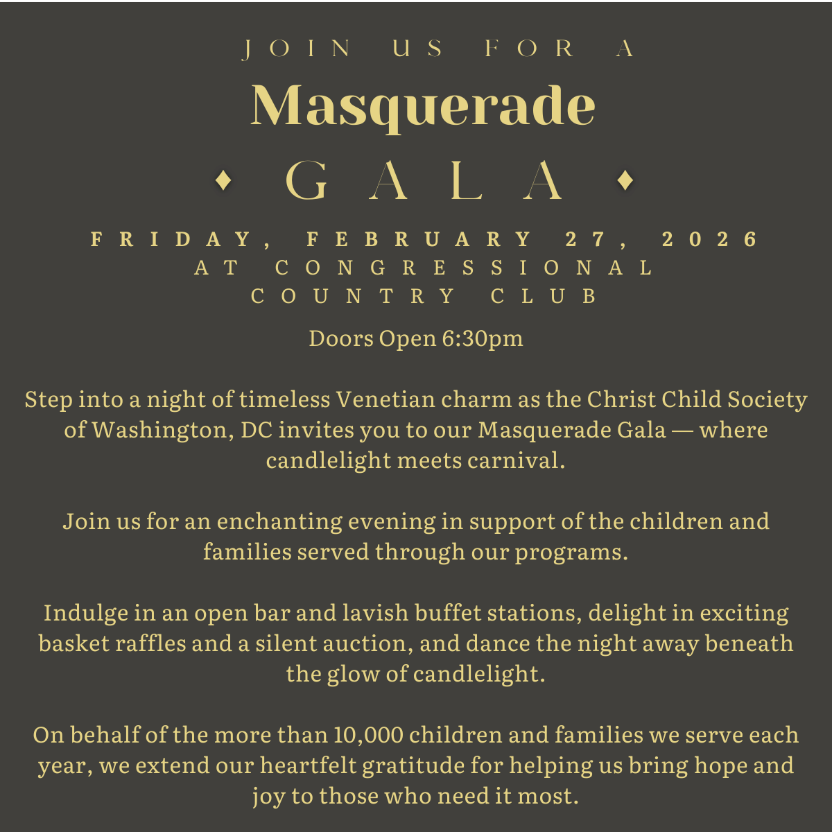 I would like to purchase a ticket and automatically be registered to support Christ Child Society, DC!