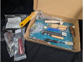 Brand-new kit filled with various tools and supplies. Box measures 19" x 9".
