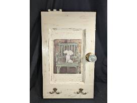24" x 14" wall hanging with attached wire. Slight tear at top-left (see photo).
