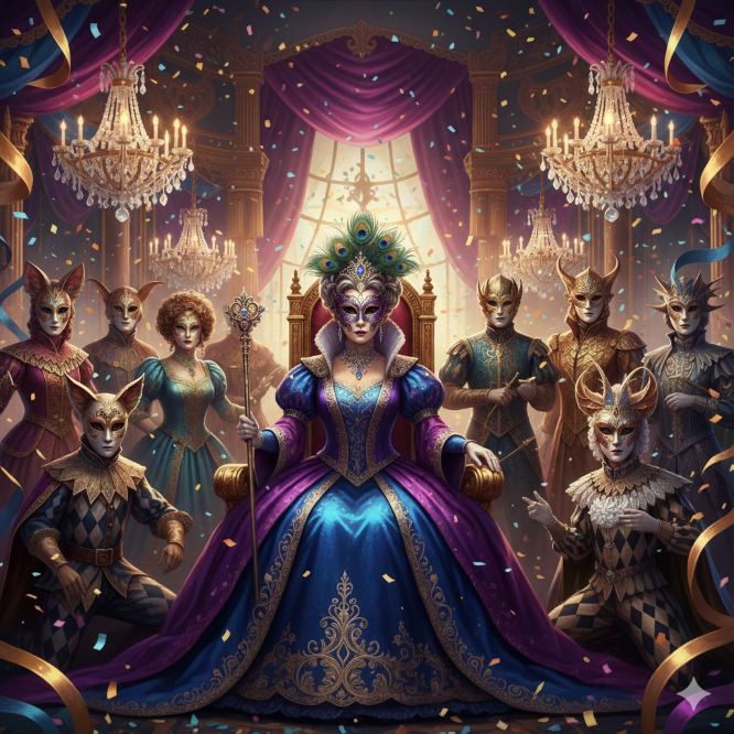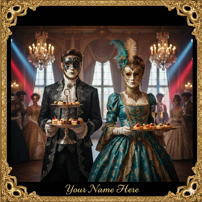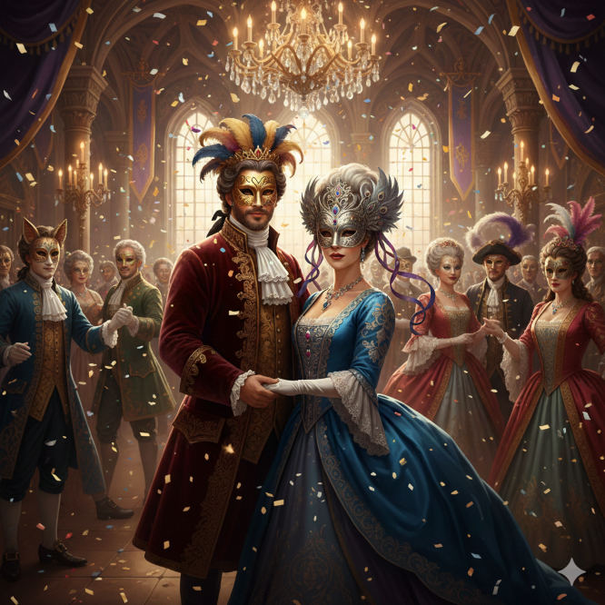 Masquerade Attire: tuxedos, gowns, & masks encouraged