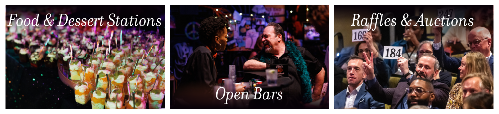 Includes Valet Parking, Open Bars, Food & Dessert Stations, Live Performances,