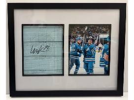 • This item contains the official score sheet from the Blues vs. Sharks Game on April 6, 2024 signed by William Eklund where he scored his first career hat trick