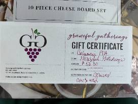 Donation includes a Host at Home 10 piece Cheese Board set & a $50 gift card to Grazeful Gatherings!