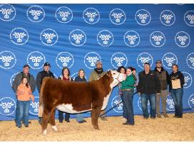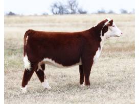 516 is a cool looking polled female from the Hogans in Iowa. Her mother 73E has produced a long list of high selling females and successful show heifers. Most recently a maternal sister to 516 got a piece of her division at Fort Worth, Cattlemen's Congress and Jr. Nationals. She also went on to be the Champion Polled Hereford at OYE in 2024. A new mating out of a proven donor.