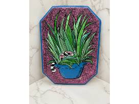 Hand painted on wood by local artist Rachel Adler of Hatch Comic.