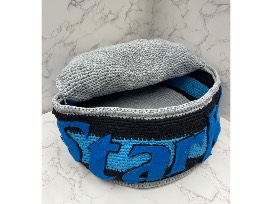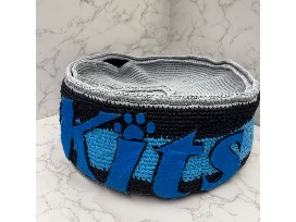 Hand crocheted cat bed in the shape of a tuna can - does it get any better than this?! Handmade by Catcade supporter Des Glover.