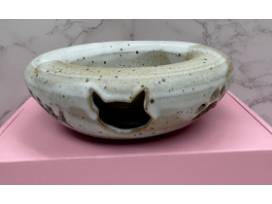 Handmade by local artist ceramic bowl with cutouts to feed your best feline friend. Could also be used as a catch-all dish, a plant holder, or many other ways! Bowl is food-safe.