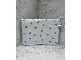 Pack all your essentials in this embroidered blue heart Lenora lingerie envelope is satin lined to gently store your most delicate items of clothing. The embroidered envelope slip easily into your overnight bag or weekend tote, ensuring these daintier items won't get lost in the shuffleAlso comes with two airplanes travel kits.