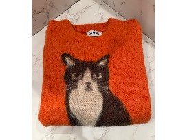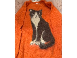 Ox Knit Orange Tuxedo Cat Jacquard Sweater - Size Large