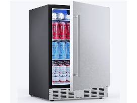 Beverage Refrigerator. 23.43 Wide Free Standing, Indoor/Outdoor Stainless Steel 100 Can Capacity.