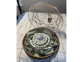 Summer Dining Basket. Serving Tray w/Netted Dome. Shabby Chic plates, Wine Glasse, Cloth Napkins and $100 Home Goods Gift Card.
