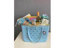 A beautiful collection of beach-day essentials and coastal treats, all tucked into a stylish light-blue Bogg Bag. This package combines relaxation, fun, and a touch of indulgence-perfect for sunshine lovers.