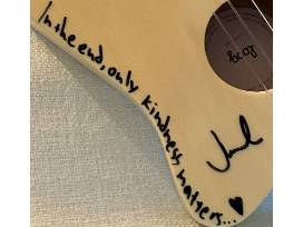 Own a truly special piece of music history with this hand-painted mini-guitar, personally signed by acclaimed singer-songwriter Jewel.