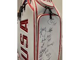 Golf Bag signed by the winning team (Team USA) of the 2024 Presidents Cup + Ernie Els Autographed Golf Pin Flag