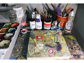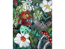 Inspired by nature, Nicole uses watercolor, inks, acrylic, and handpainted papers to build texture in her paintings. She enjoys finding the patterns in botanical subjects, then applying them to her works. Elements of embroidery, Polish and Pennsylvania Dutch designs, and natural handwriting often find their way into her paintings.