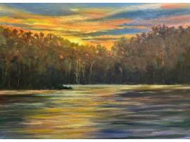 Chris Gold, from York, PA, started painting later in life. Her informal art education was gained by taking regional professionals' workshops and classes. Gold's creative journey began when her daughter brought home a coffee mug from her school's ceramics class in 1999. The pair decided to take private lessons together and Chris discovered the joy of creating functional pieces from a lump of clay. After 15 years of occasional frustrating unfixable failures coming from her kiln, Chris wanted a new medium for her creative outlet. Gold had memories of watching, with fascination, her father paint with colorful, creamy oil paints. Assuming she had not inherited his DNA art gene, she did not pick up a brush until 2013, when in her mid-50's. Oils are now Chris's chosen medium. They allow flexibility to change a work, bringing her aesthetic to completion. Painting has become a better vehicle to express her appreciation of the strength God gives and Nature's abundant beauty.