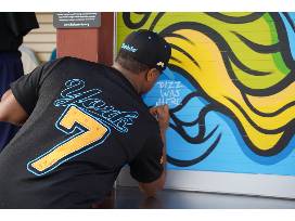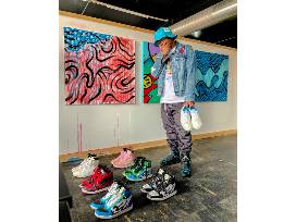 Dizz Gavins, aka Dizzuane (Dizz-Wayne), is a multidisciplinary artist born in Baltimore with roots in York and Lancaster, PA. Known for his signature "Dripped Gawd" style-fluid, vibrant, and unapologetically bold-Dizz blends fashion, graphic design, and fine art. His creative lane has led to collaborations with New Balance, PUMA, Levi's and More. His largest work to date is a striking mural in Harrisburg's Strawberry Square district.